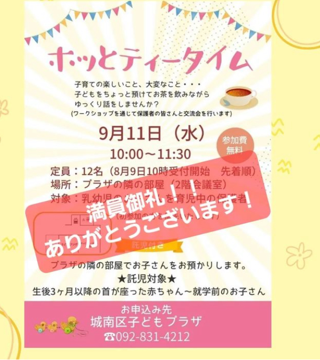 ホッとティータイムは定員に達しました