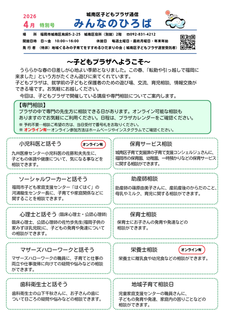 城南区子どもプラザのお知らせや講座・イベント情報、子育て支援情報